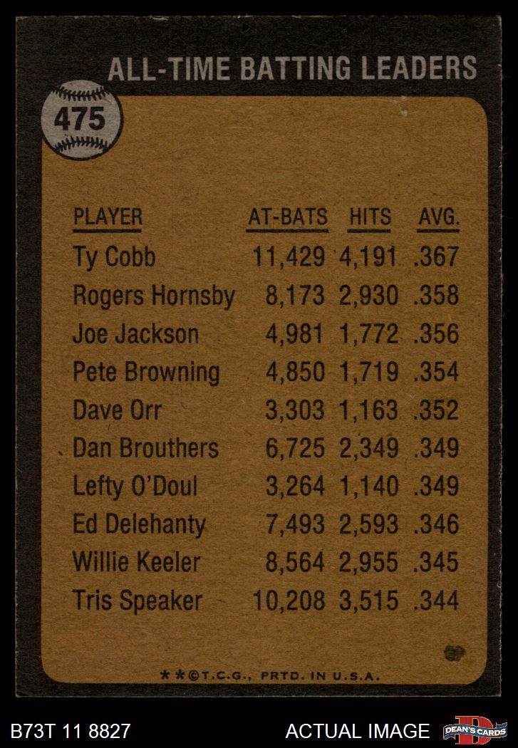 1973 Topps #475 - Ty Cobb All-Time Batting Leader 6 - EX/MT