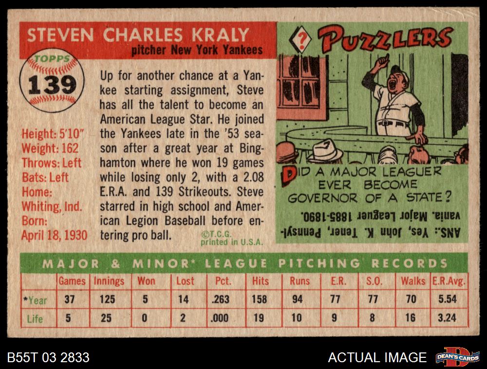 1955 Topps #139 Steve Kraly 5.5 - EX+