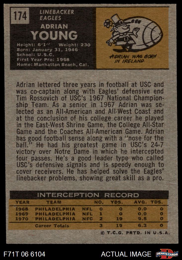 1971 Topps #174 Player Pictured is Rick Duncan Adrian Young 6 - EX/MT