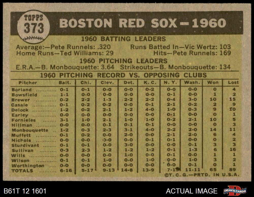 1961 Topps #373 Red Sox Team 7 - NM