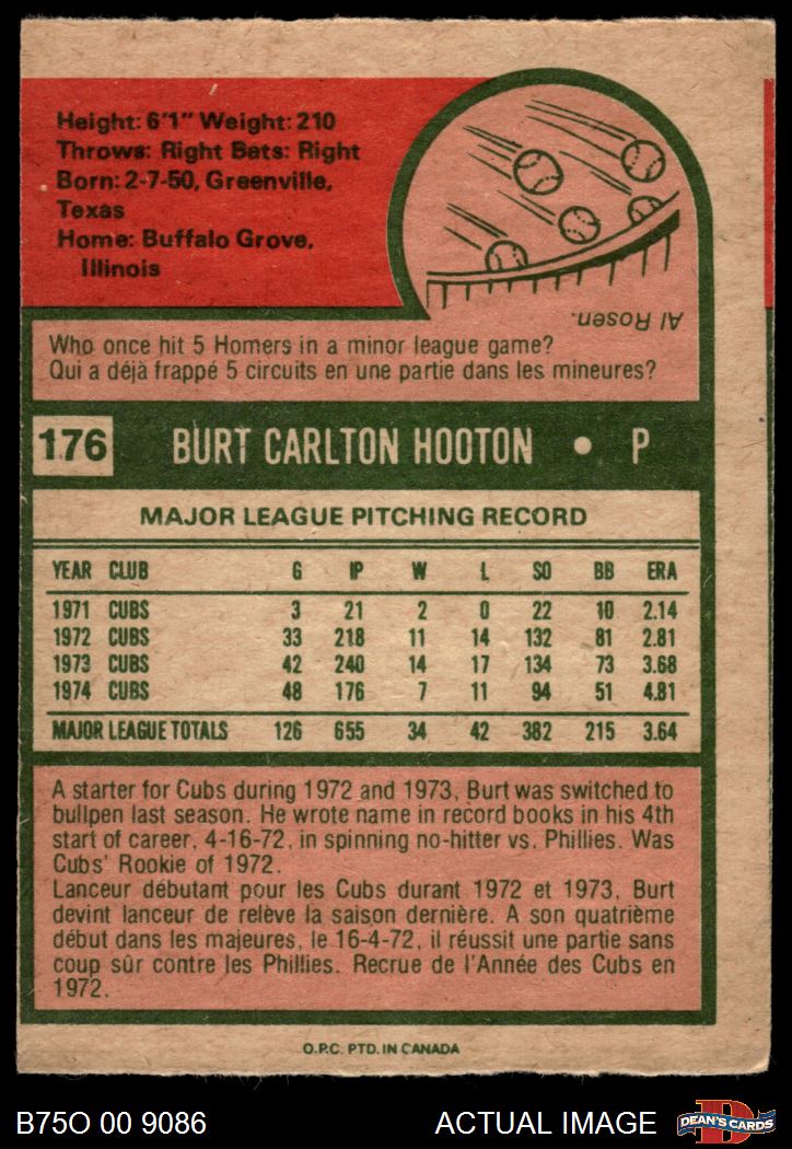 1975 O-Pee-Chee #176 Burt Hooton 2 - GOOD