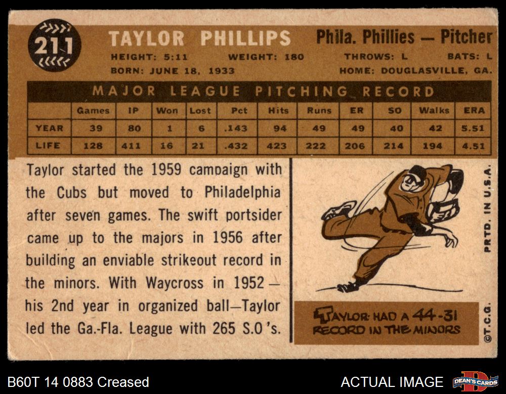 1960 Topps #211 Taylor Phillips 2 - GOOD