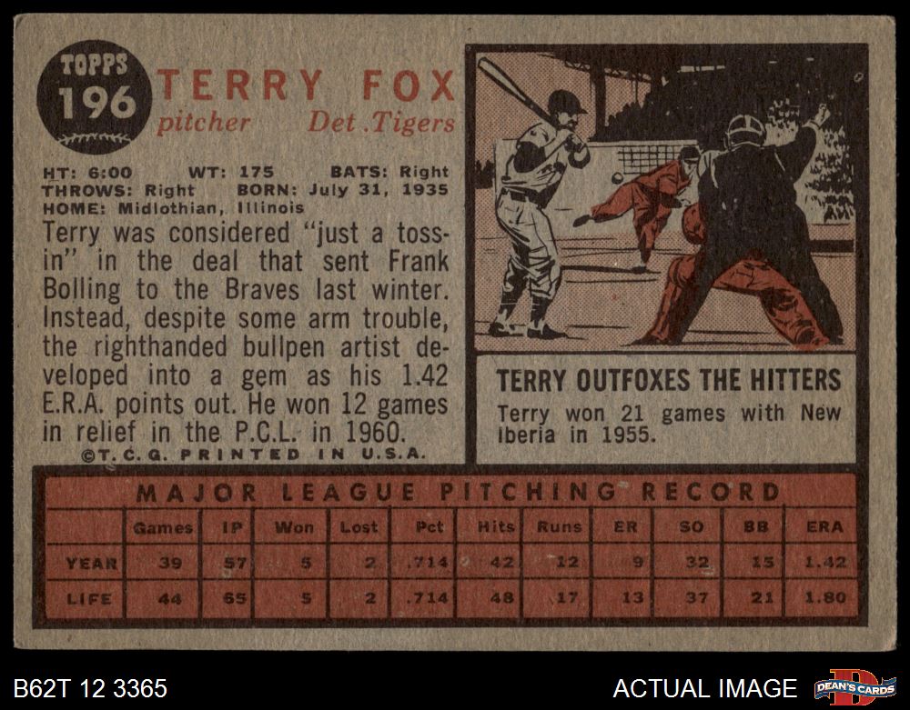 1962 Topps #196 NRM Terry Fox 1.5 - FAIR