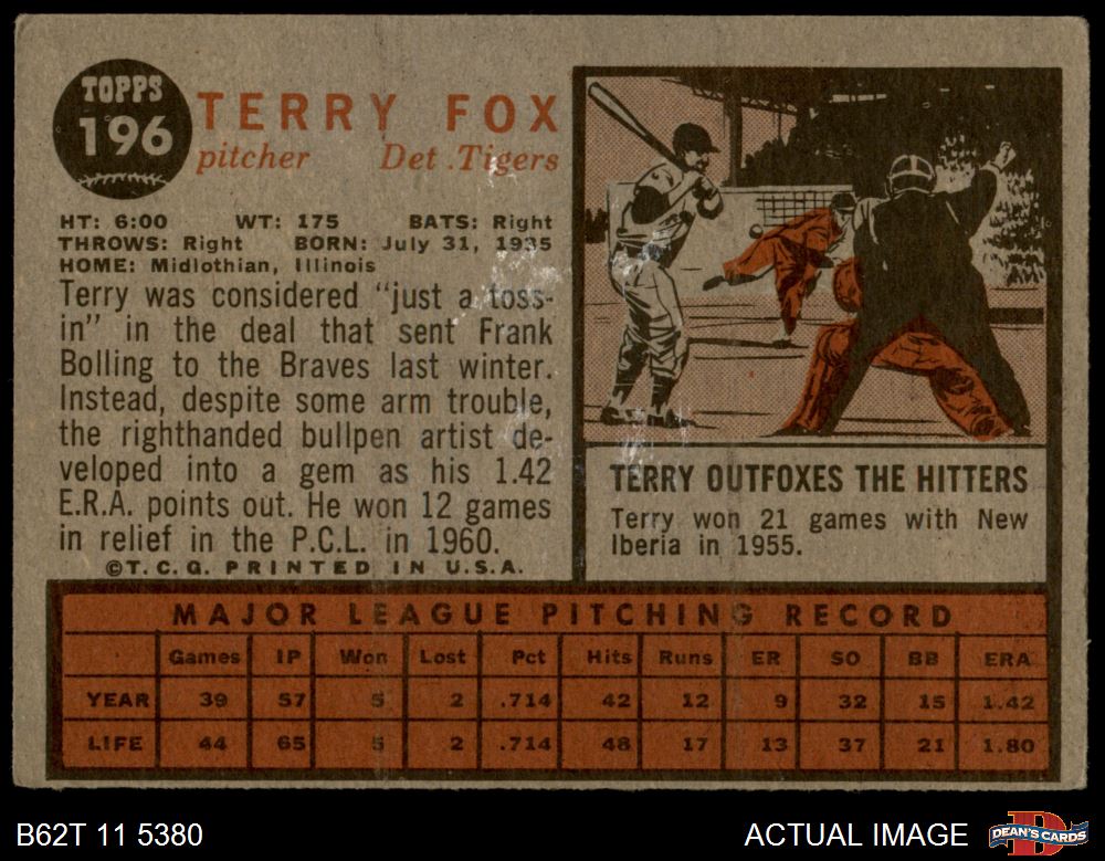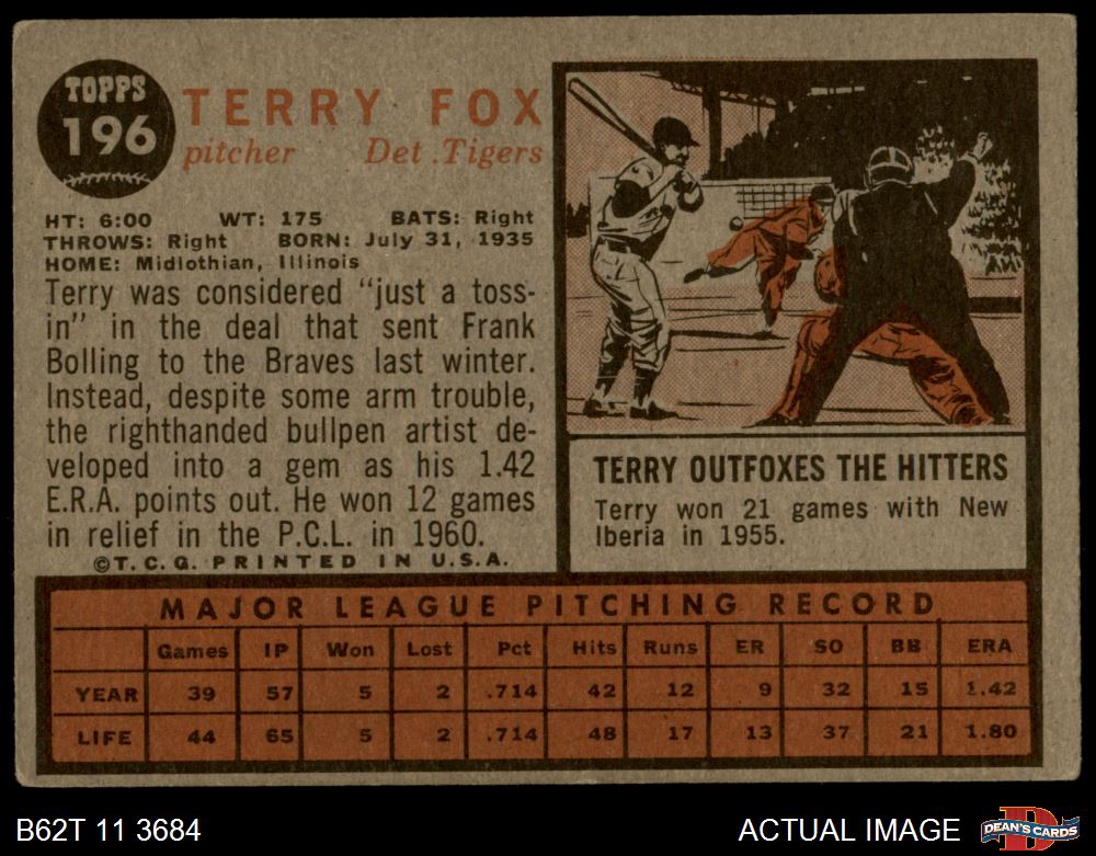 1962 Topps #196 NRM Terry Fox 2 - GOOD