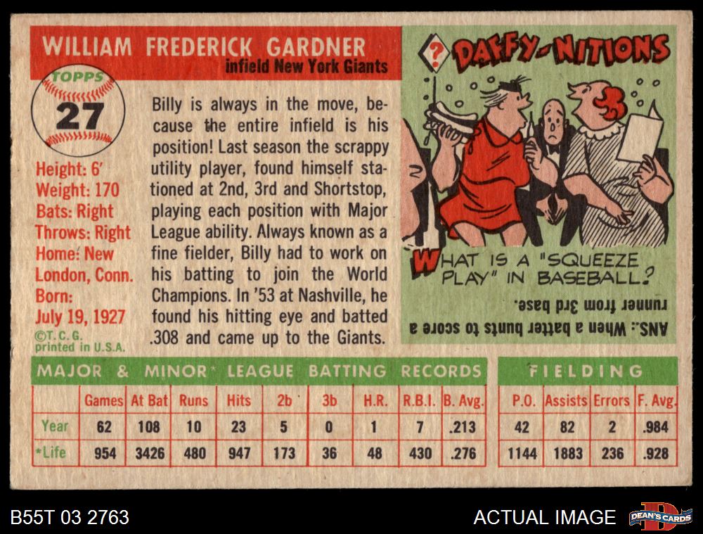 1955 Topps #27 Billy Gardner 4.5 - VG/EX+