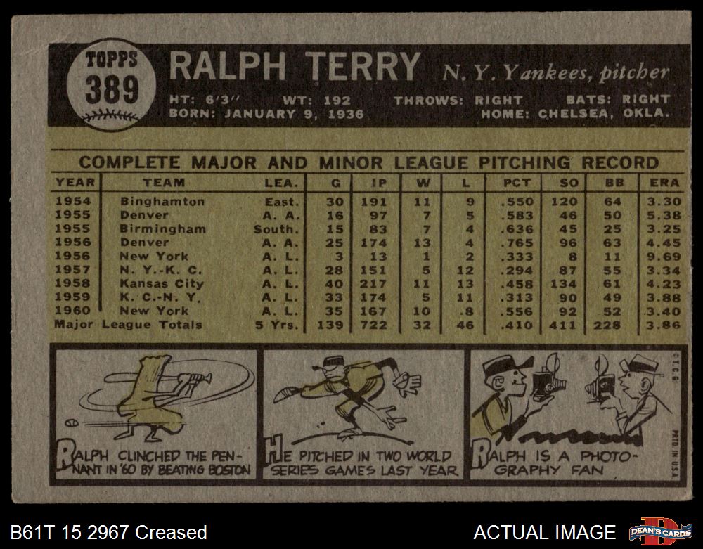 1961 Topps #389 Ralph Terry