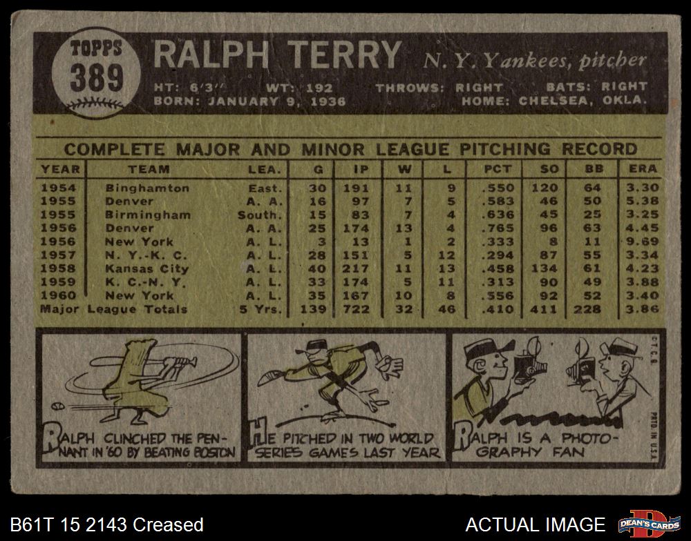 1961 Topps #389 Ralph Terry 2 - GOOD