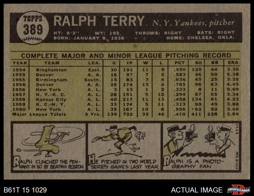 1961 Topps #389 Ralph Terry 6 - EX/MT
