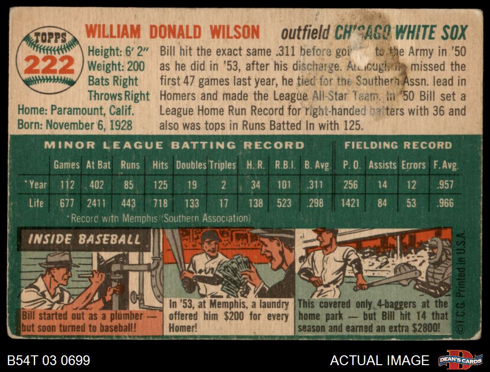 1954 Topps #222 Bill Wilson 1.5 - FAIR