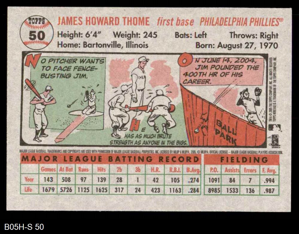 2005 Topps Heritage #50 BAT Jim Thome 8 - NM/MT