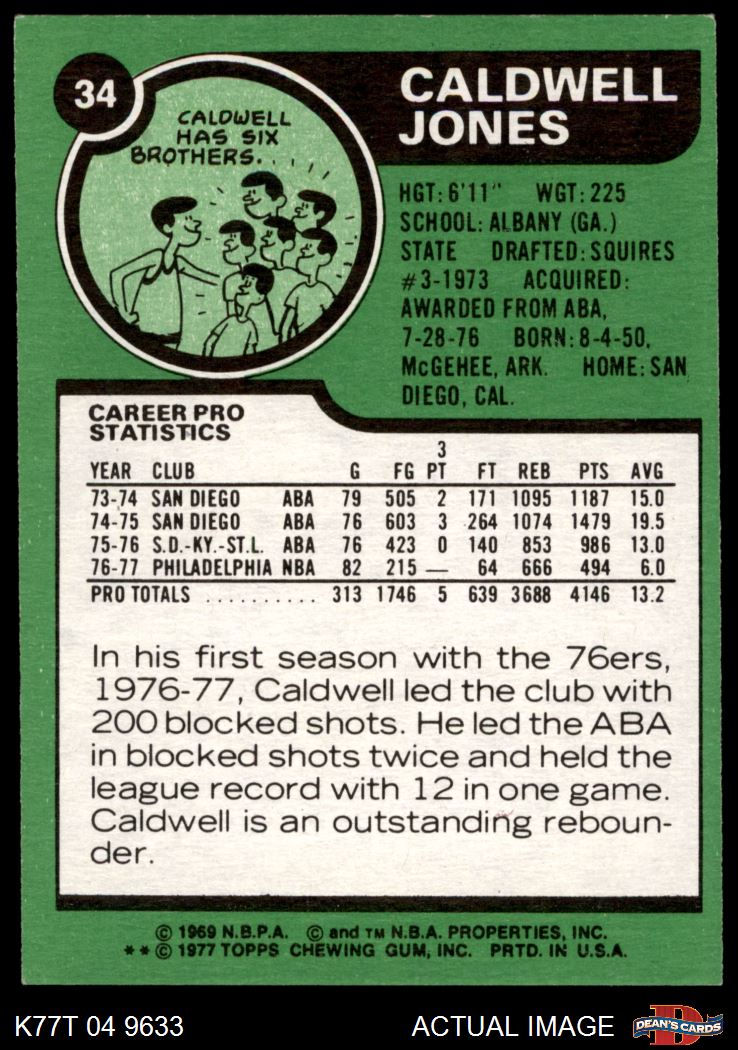 1977 Topps #34 Caldwell Jones 5 - EX