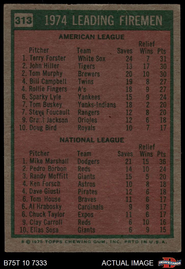 1975 Topps #313 - Mike Marshall / Terry Forster Leading Firemen 2 - GOOD