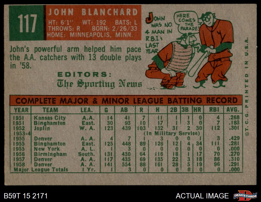 1959 Topps #117 John Blanchard 1.5 - FAIR