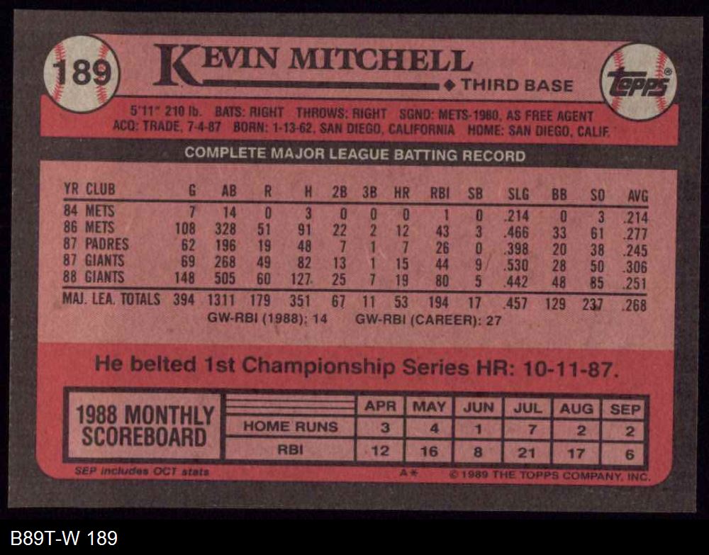 1989 Topps #189 Kevin Mitchell 8 - NM/MT