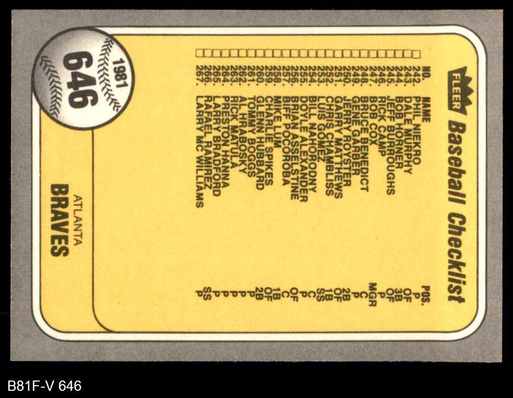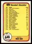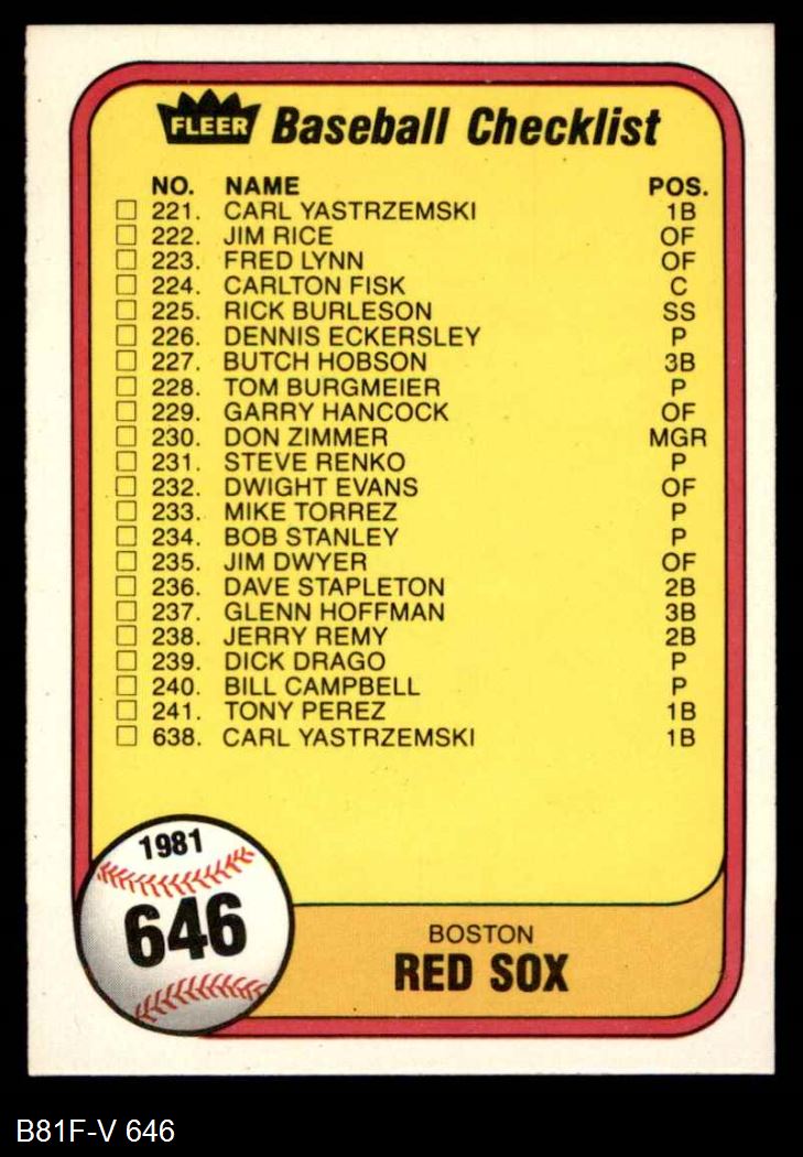 1981 Fleer #646 Braves / Red Sox Checklist 8 - NM/MT