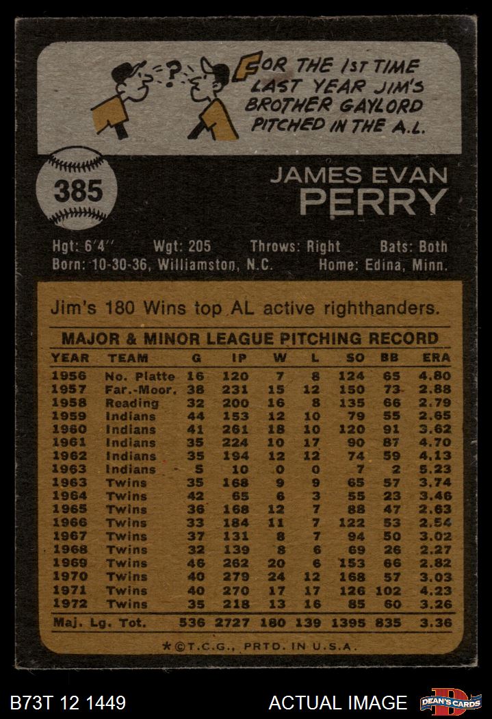 1973 Topps #385 Jim Perry 3 - VG