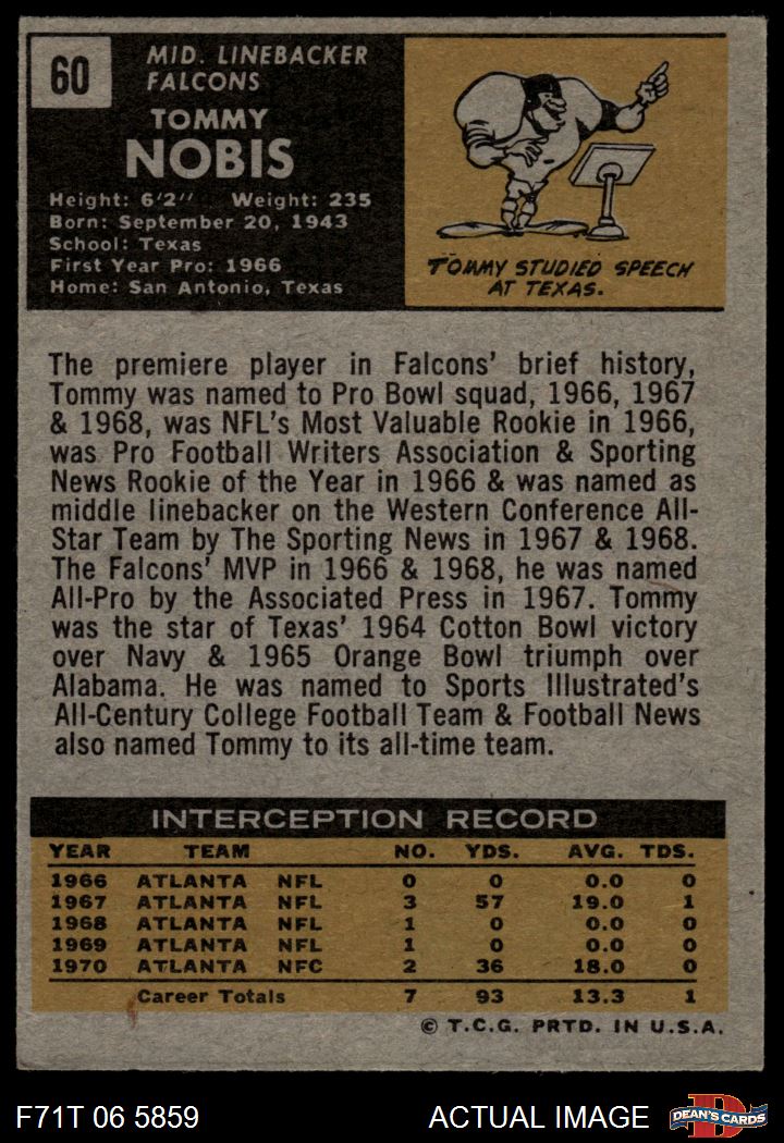 1971 Topps #60 Tommy Nobis 6 - EX/MT