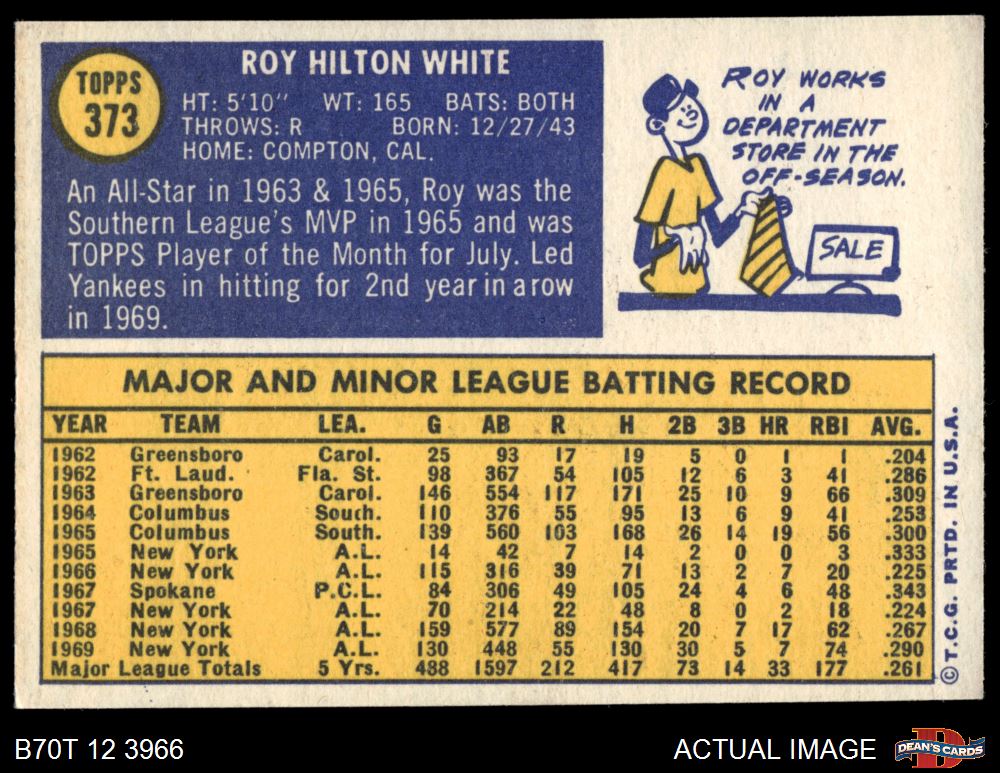 1970 Topps #373 Roy White 6 - EX/MT