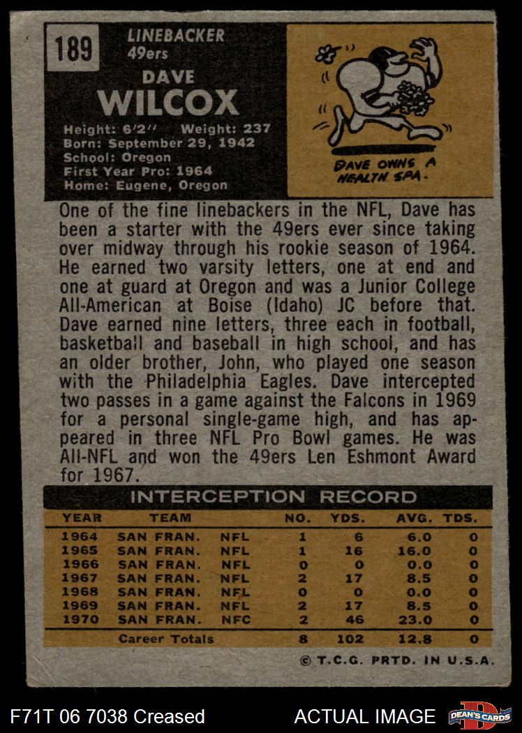 1971 Topps #189 Dave Wilcox 2 - GOOD