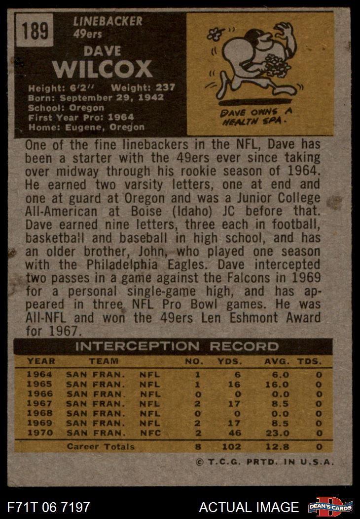 1971 Topps #189 Dave Wilcox 4 - VG/EX