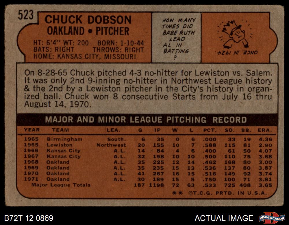 1972 Topps #523 Chuck Dobson 1 - POOR