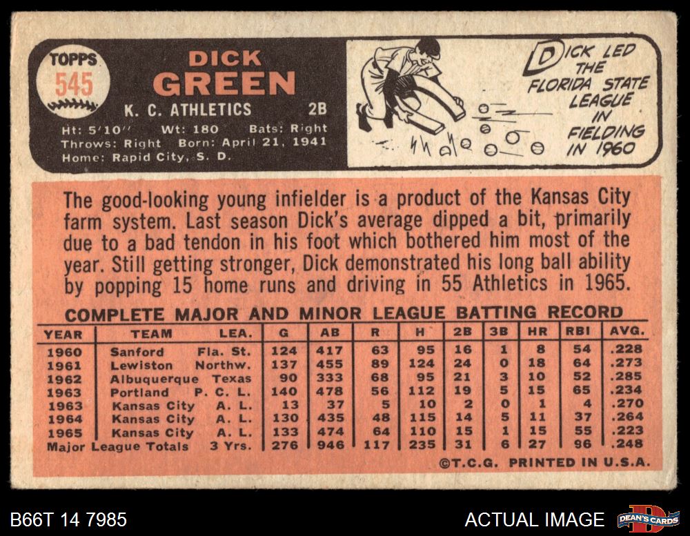 1966 Topps #545 Dick Green 2 - GOOD