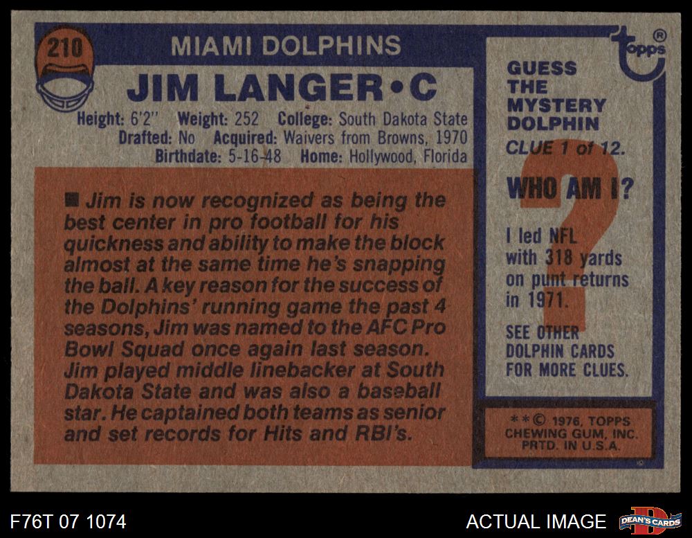 1976 Topps #210 Jim Langer 6.5 - EX/MT+