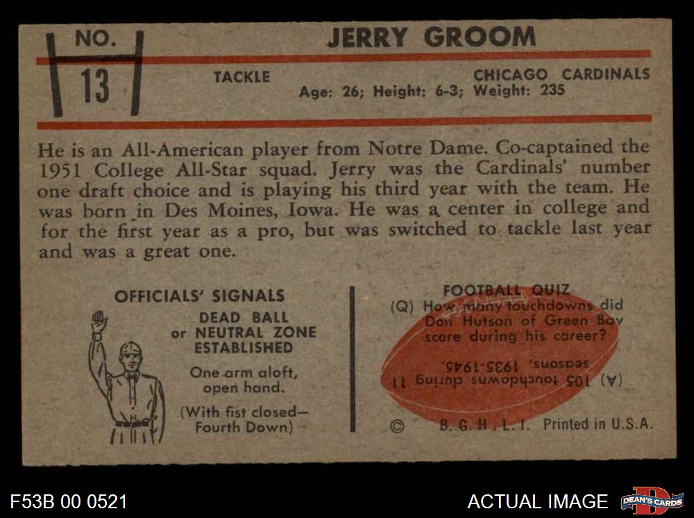 1953 Bowman #13 Jerry Groom 4 - VG/EX