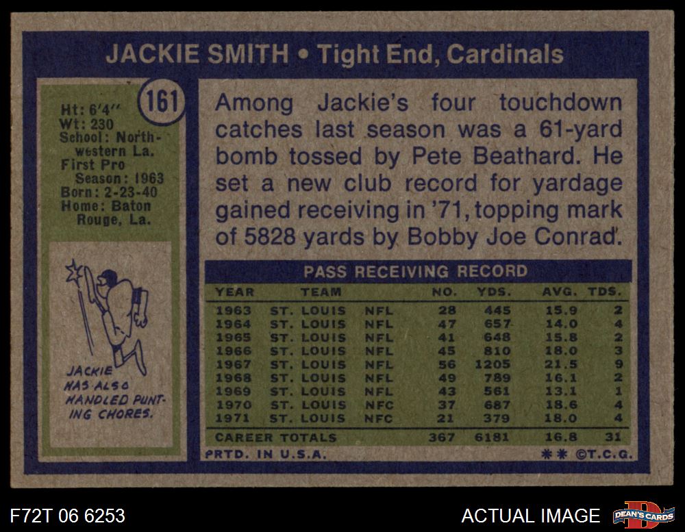 1972 Topps #161 Jackie Smith 4 - VG/EX