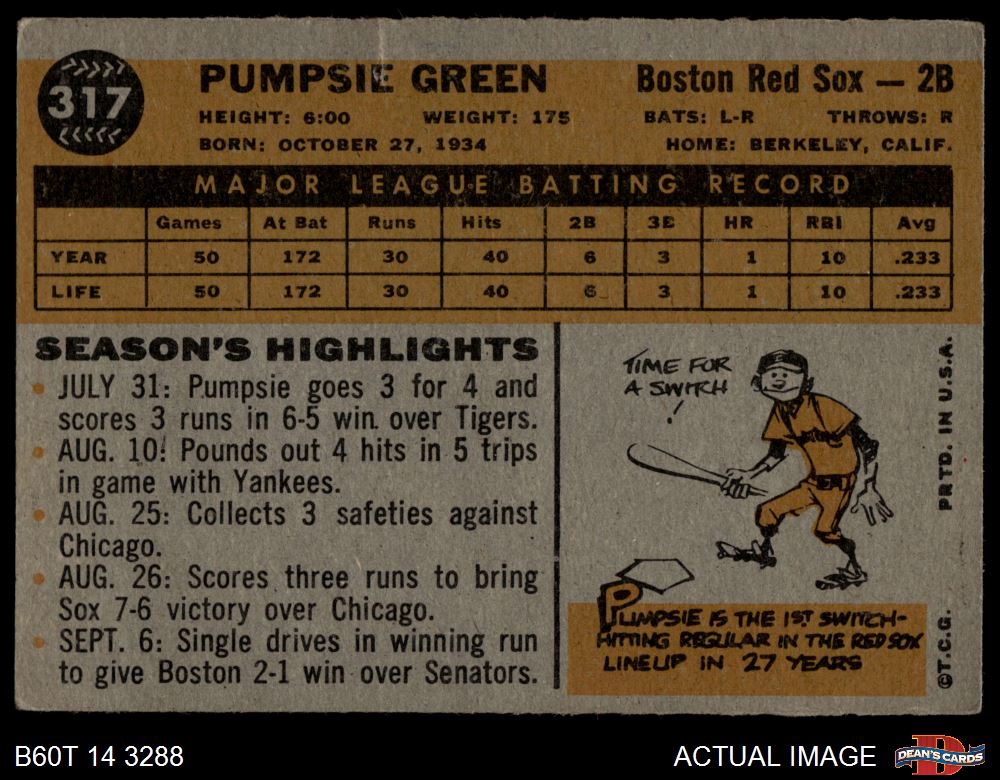 1960 Topps #317 Pumpsie Green