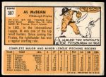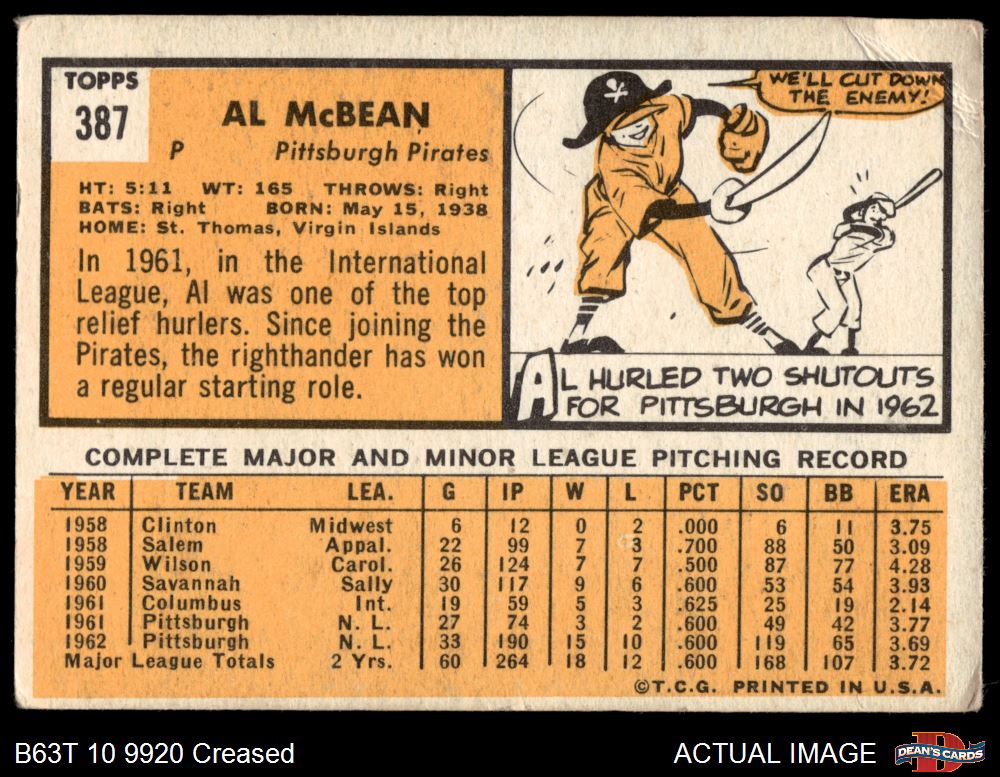 1963 Topps #387 Yellow or white "A" on cartoon on back Al McBean 2 - GOOD
