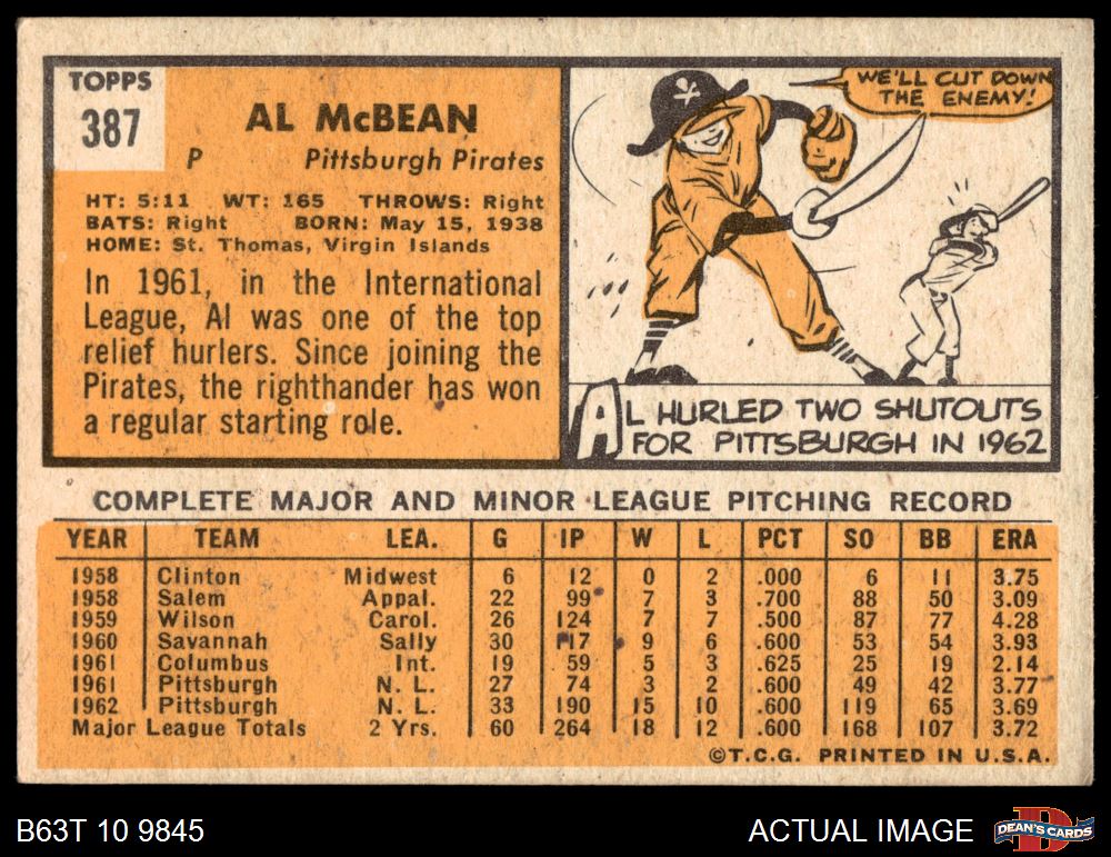 1963 Topps #387 Yellow or white "A" on cartoon on back Al McBean 5 - EX