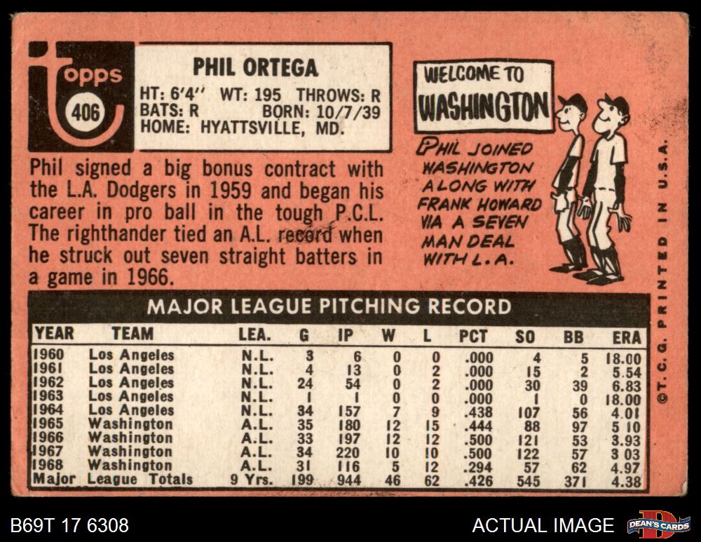 1969 Topps #406 Phil Ortega 1.5 - FAIR