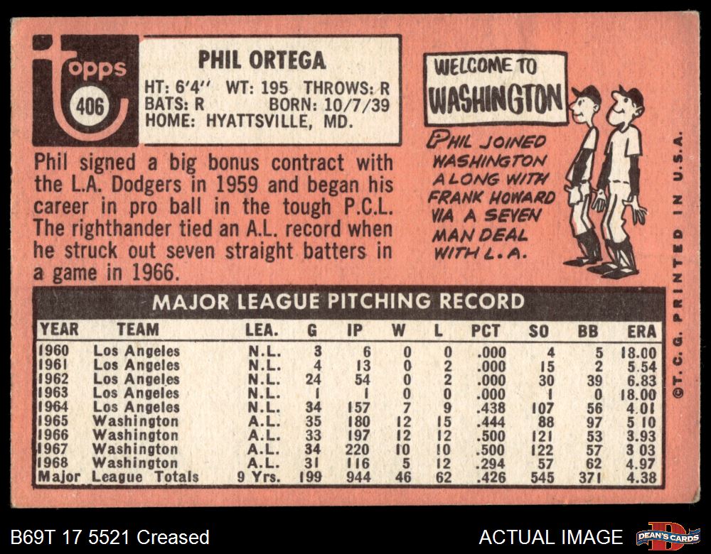 1969 Topps #406 Phil Ortega 2 - GOOD