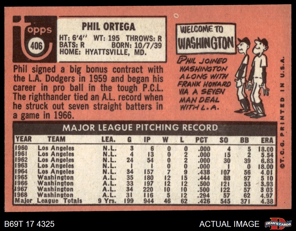 1969 Topps #406 Phil Ortega 6 - EX/MT