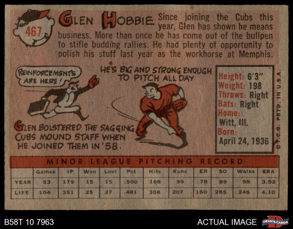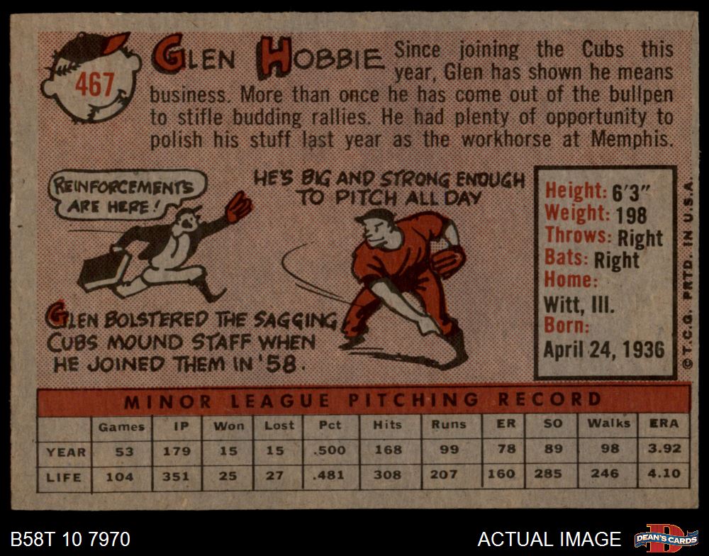 1958 Topps #467 Glen Hobbie 2 - GOOD