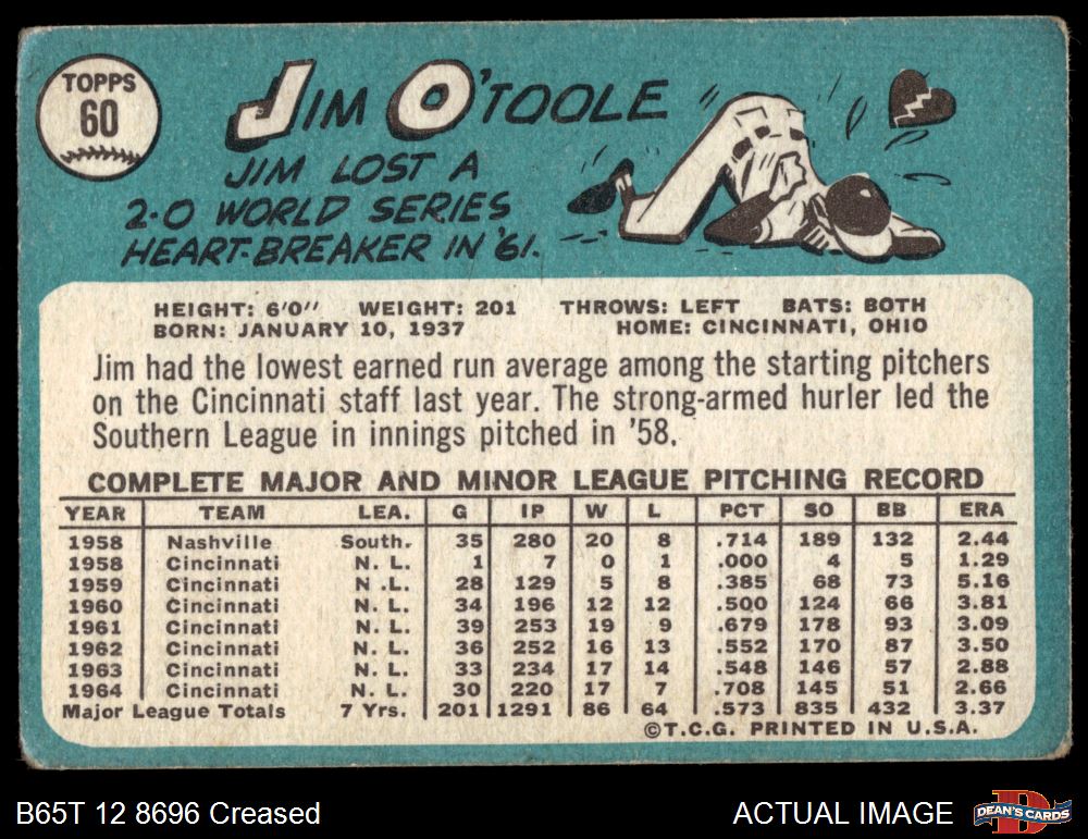 1965 Topps #60 Jim O'Toole 1 - POOR