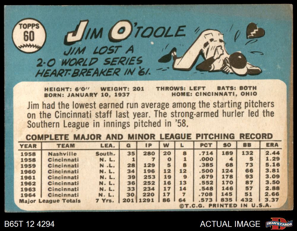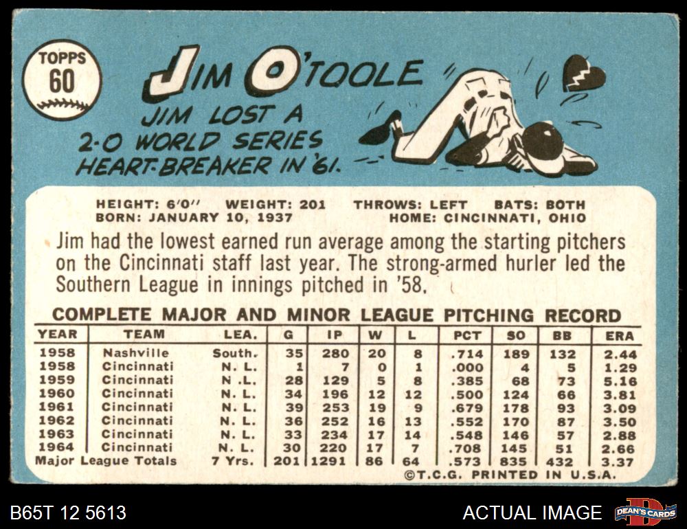1965 Topps #60 Jim O'Toole 2 - GOOD