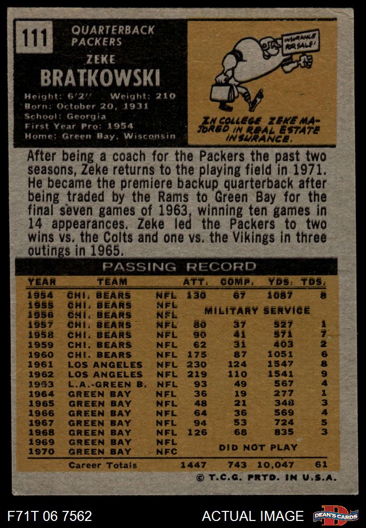 1971 Topps #111 Zeke Bratkowski Front Thumbnail