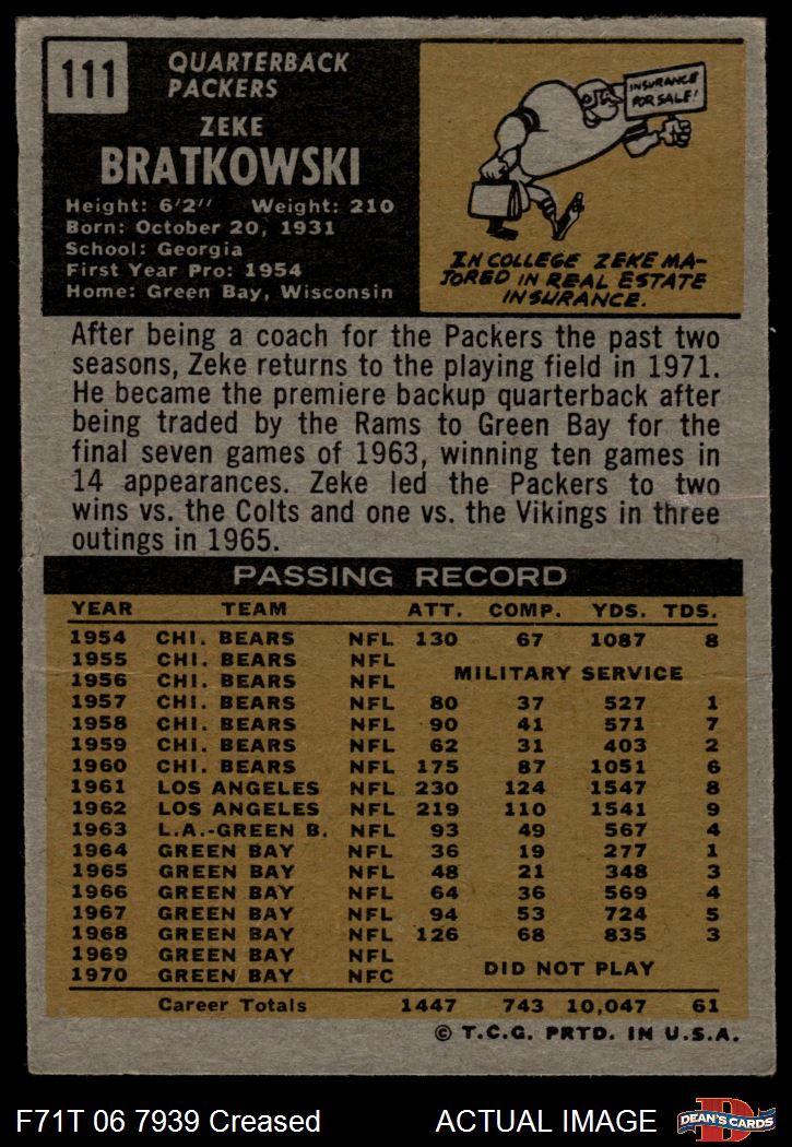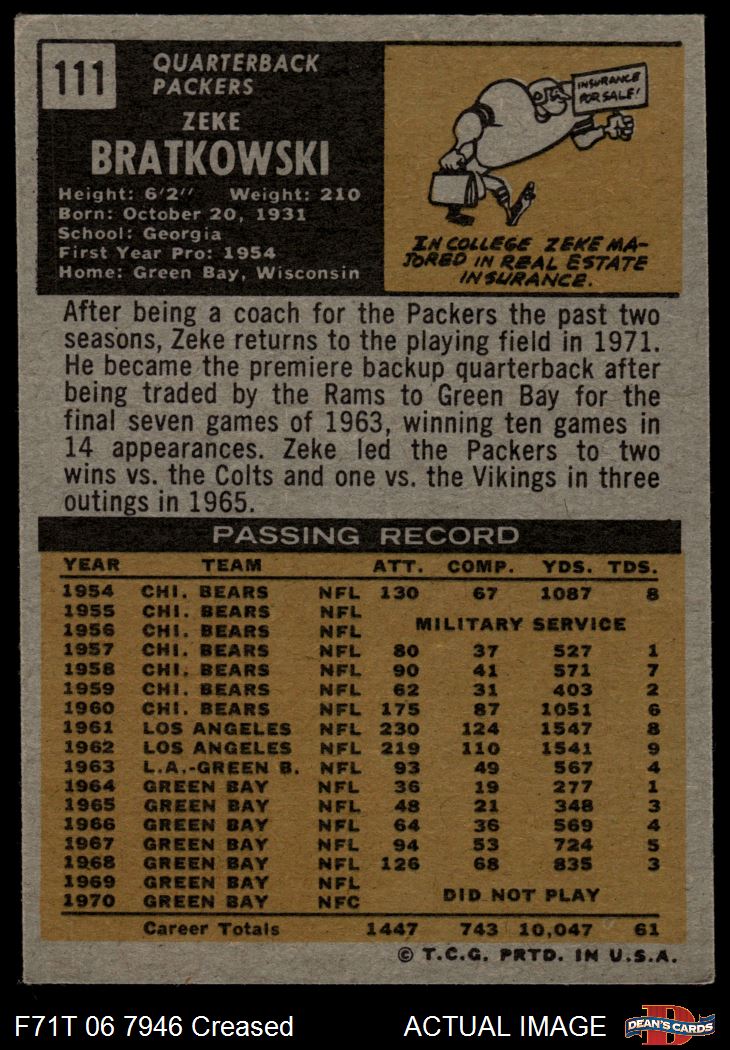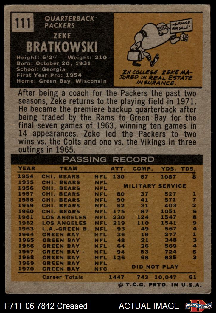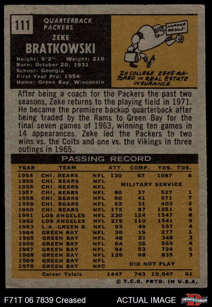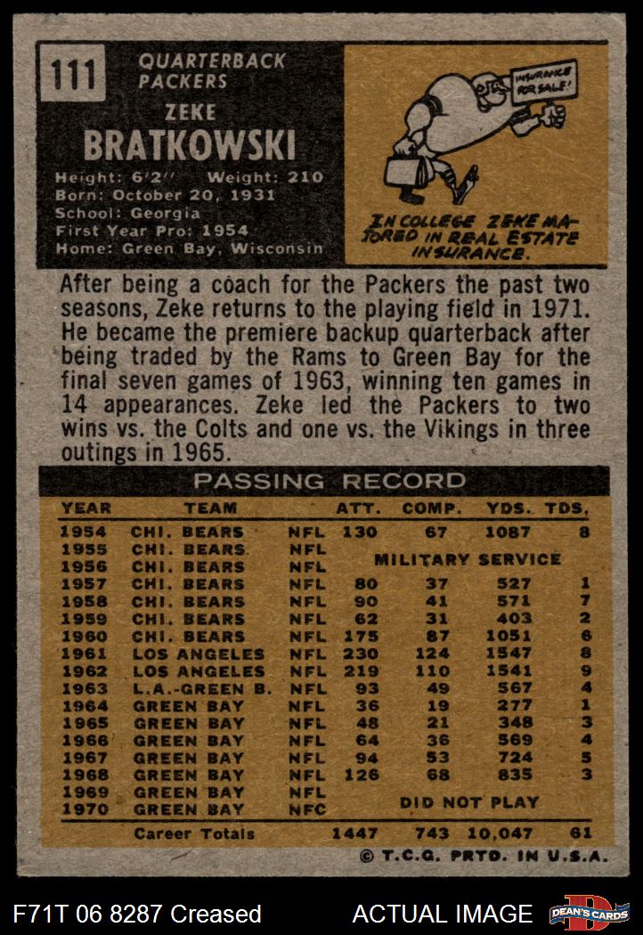 1971 Topps #111 Zeke Bratkowski 3 - VG