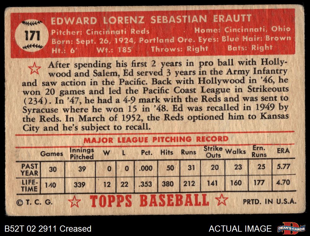1952 Topps #171 CRM Ed Erautt