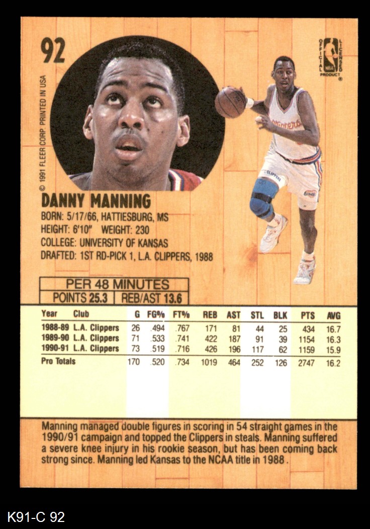 1991 Fleer #92 Danny Manning 8 - NM/MT