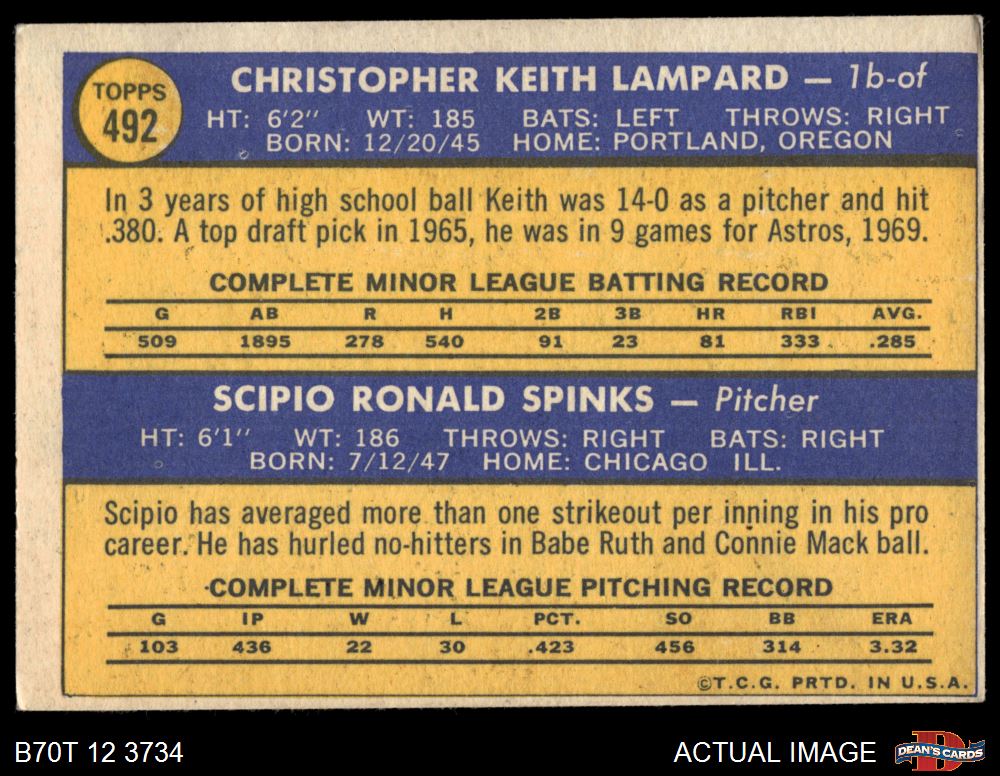 1970 Topps #492 - Keith Lampard / Scipio Spinks Astros Rookies 4 - VG/EX