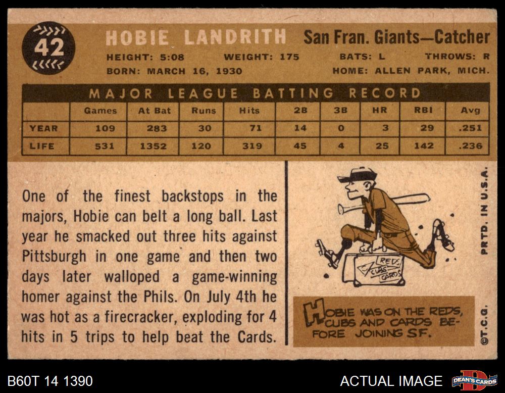 1960 Topps #42 Hobie Landrith 4.5 - VG/EX+