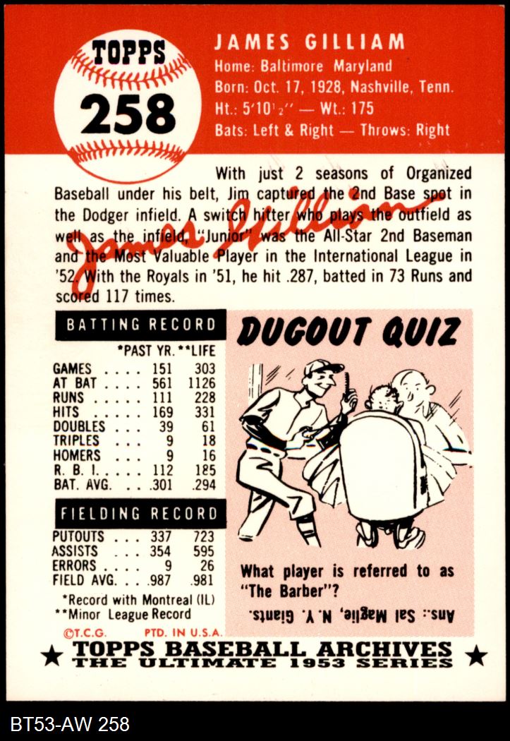 1953 Topps Archives #258 Jim Gilliam 8 - NM/MT