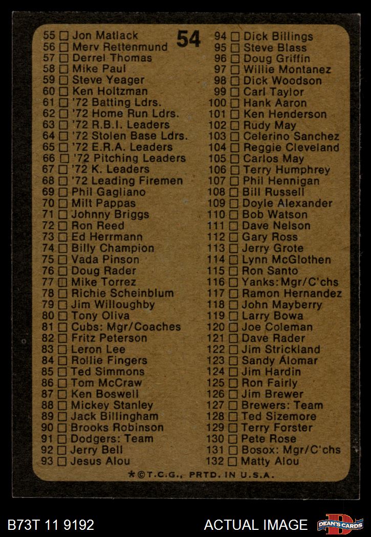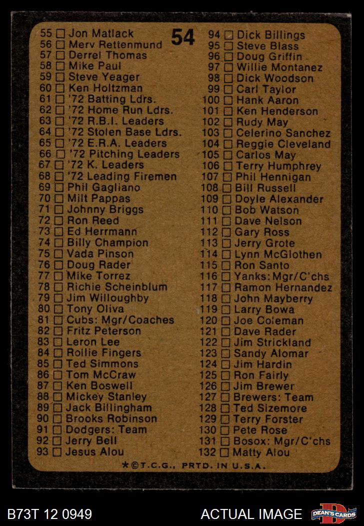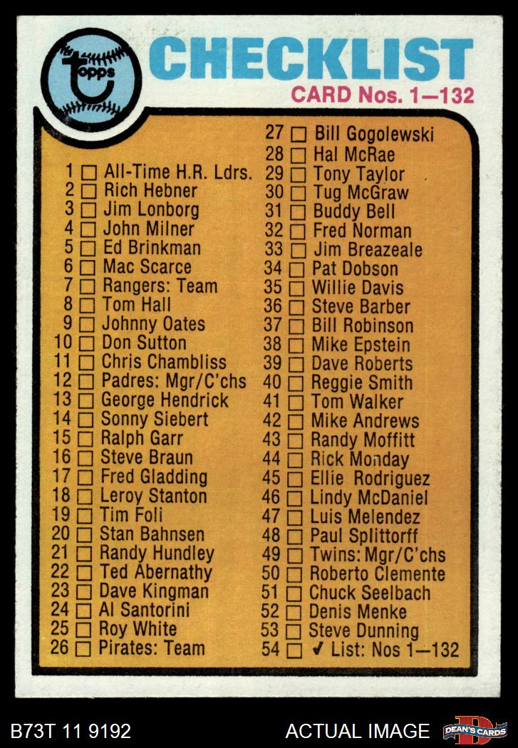 1973 Topps #54 Checklist 1 5 - EX