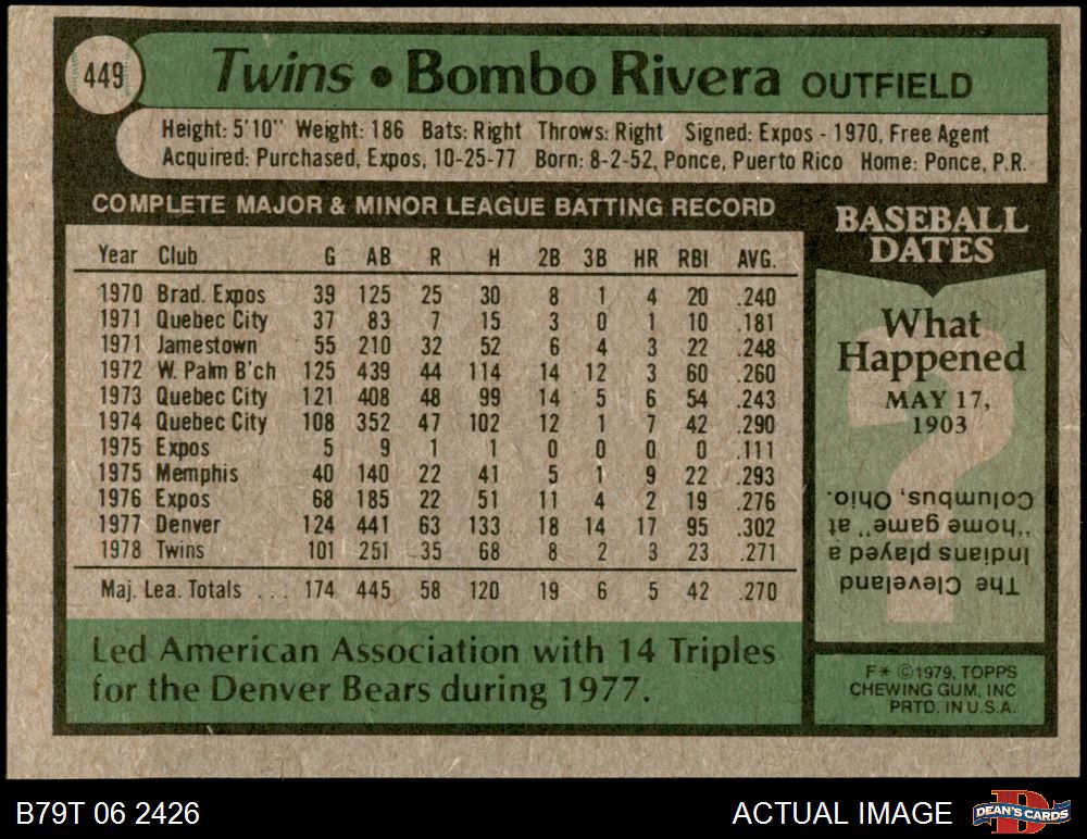 1979 Topps #449 Bombo Rivera