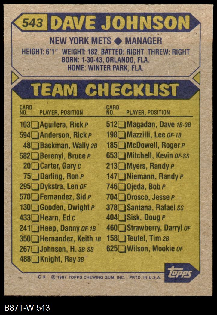 1987 Topps #543 Davey Johnson