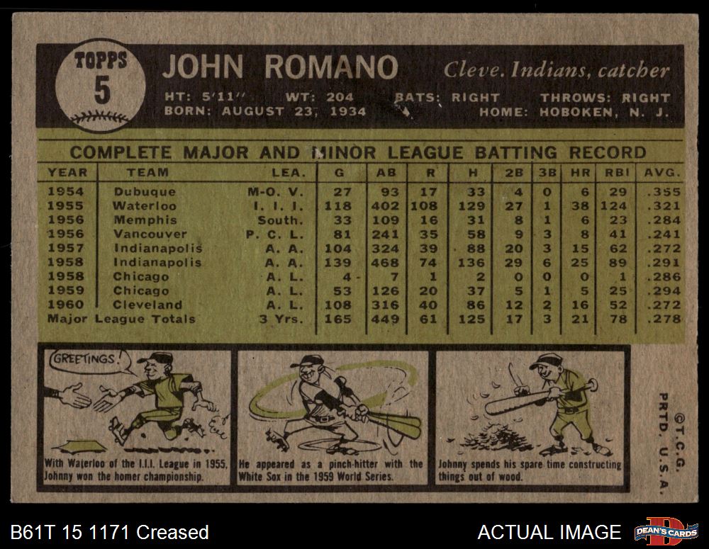 1961 Topps #5 John Romano 3 - VG