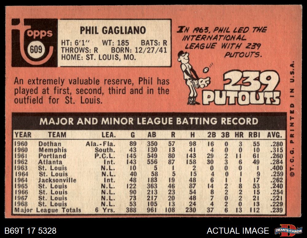 1969 Topps #609 Phil Gagliano 2 - GOOD